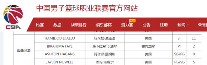北京时间12月12日,CBA官网公布新赛季最新的外援注册信息,山西男篮“压哨”注册前NBA扣篮王迪亚洛,他能够赶上本日对阵卫冕冠军广厦男篮的揭幕战,而四川男篮依然是唯一没有注册外援的球队。